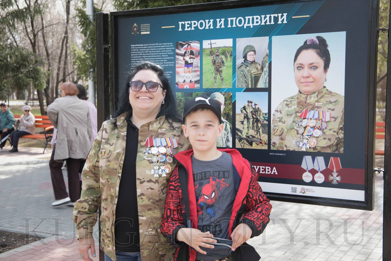 В Городском саду Кургана сегодня состоялось торжественное открытие выставки «Герои и подвиги» в рамках историко-просветительского проекта, который реализуется Российским военно-историческим обществом с 2022 года. Проект посвящен участникам специальной военной операции – современным защитникам Отечества, которые продолжают славные традиции героев Великой Отечественной войны. На мероприятие собрались ветераны специальной военной операции, родители и родные Героев СВО, кадеты и школьники, студенты, представители регионального общественного движения «Волонтеры Победы».