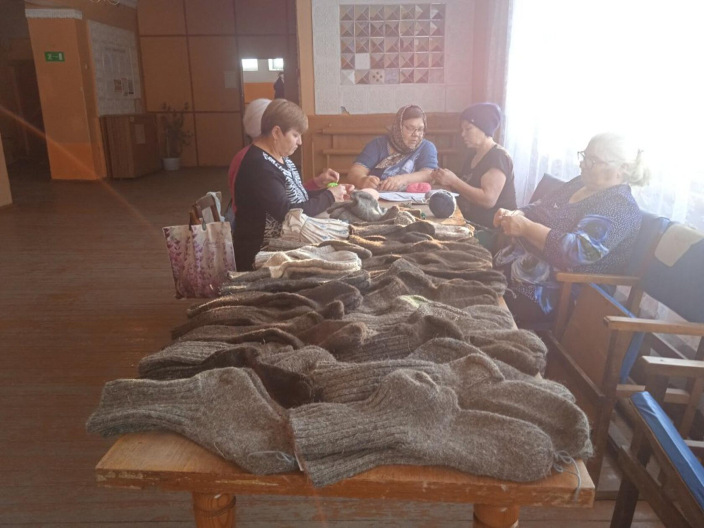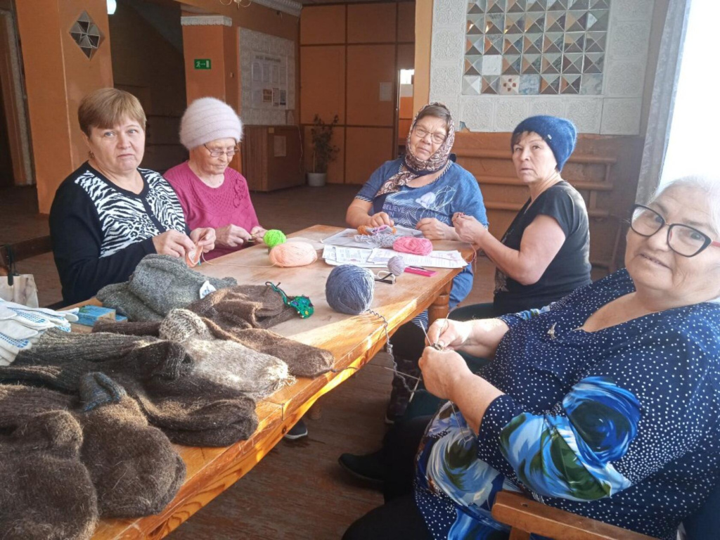 Свою лепту внесли рукодельницы кружка. "Девичьи посиделки". Они связали 30 пар шерстяных носков, которые тоже были отправлены на передовую.