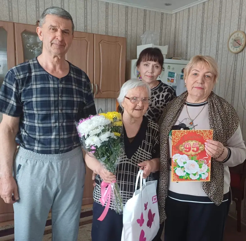 Гости тепло поздравили Антонину Ивановну и вручили подарки. Юбилярша, несмотря на почтенный возраст, встретила гостей с хорошим настроением и была очень рада визиту, с удовольствием поддерживала разговор.