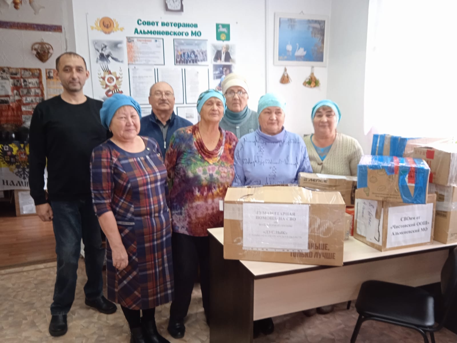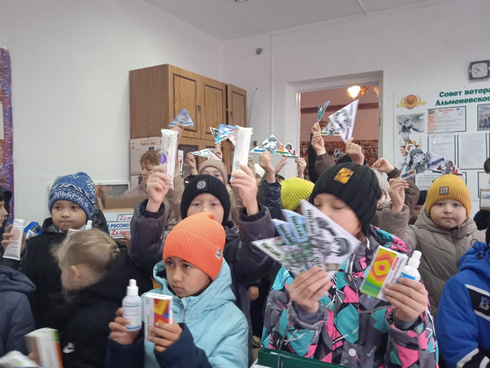 Сроки акции: с 20 ноября по 02 декабря Игрушки и новогодние подарки можно принести по адресу: с. Альменево пл. Комсомола, 1 каб.15. "Совет Ветеранов". Представители Народного Фронта доставят нашим бойцам: гуманитарную помощь. Наши земляки супруги Мавлютовы Анвар Ахатович и Хатима Шайхетдиновна из села Танрыкулова отправили на фронт автомобиль и сладкие подарки, а Мухаметжанова Сайма из Майлыка связала 15 пар носков. Учителя из Альменевской школы Чиняева Э.В. и Фархутдинова Л.М. приготовили к отправке большую партию гуманитарного груза.