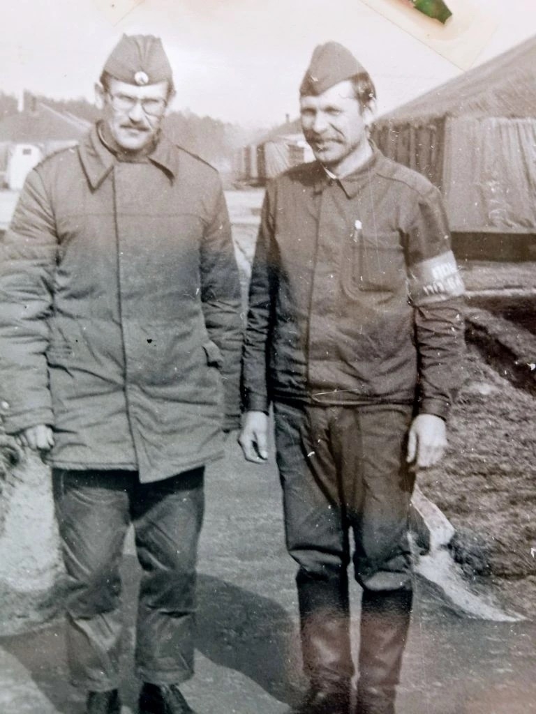 На фото Василий Александрович второй слева вверху во втором ряду и Палицын Дмитрий Иванович, рядовой, тоже житель нашего села был в Чернобыле с 09.04.1987 по 28.12.1987г. На фото внизу, третий слева. А также участниками ликвидации последствий на ЧАЭС были Зайков Виктор Алексеевич, Ознобишин Самуил Филиппович, Охулков Анатолий Александрович, все они награждены медалью «За спасение погибавших», Вохмяков Александр Павлович, Кононов Александр Анатольевич, Архипов Анатолий Алексеевич. Чернобыльская авария стала не только огромной трагедией и крупнейшей экологической катастрофой 20го века, но и уроком всему человечеству, показав, что вышедшая из-под контроля ядерная энергия не признает границ. К сожалению, её отголоски будут звучать еще долго и скажутся не на одном поколении людей. Ведь радиоактивный мусор утратит свою губительную силу через 300 лет. Все, кто там был, это настоящие мужчины. Они выполнили свой долг с риском для здоровья и самой жизни, и государство просто обязано оказывать им помощь и поддержку.