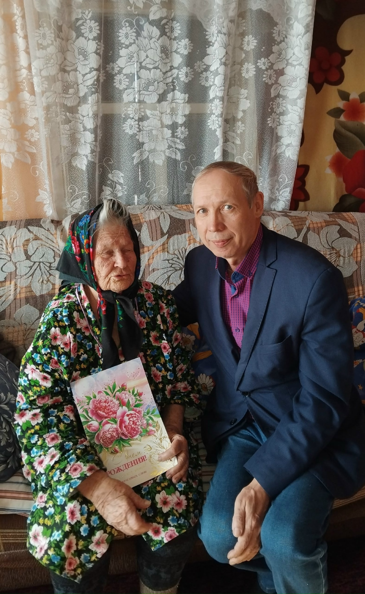 Поздравления от Президента РФ, Губернатора региона и подарок от «Центра социального обслуживания № 5» вручила специалист по социальной работе Н.И.Берташюс. Присоединился к поздравлению председатель совета ветеранов С.А.Старцев.