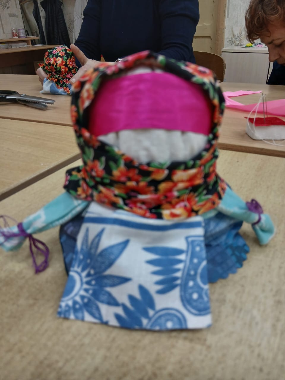 Эту куклу называли ещё «Горошенка», «Зернушка». Целью занятия стало привлечение пожилых людей к культурному и духовному обогащению посредством рукоделия, развития интереса к народному творчеству. Участники мероприятия познакомились с историей и традицией по изготовлению куклы.