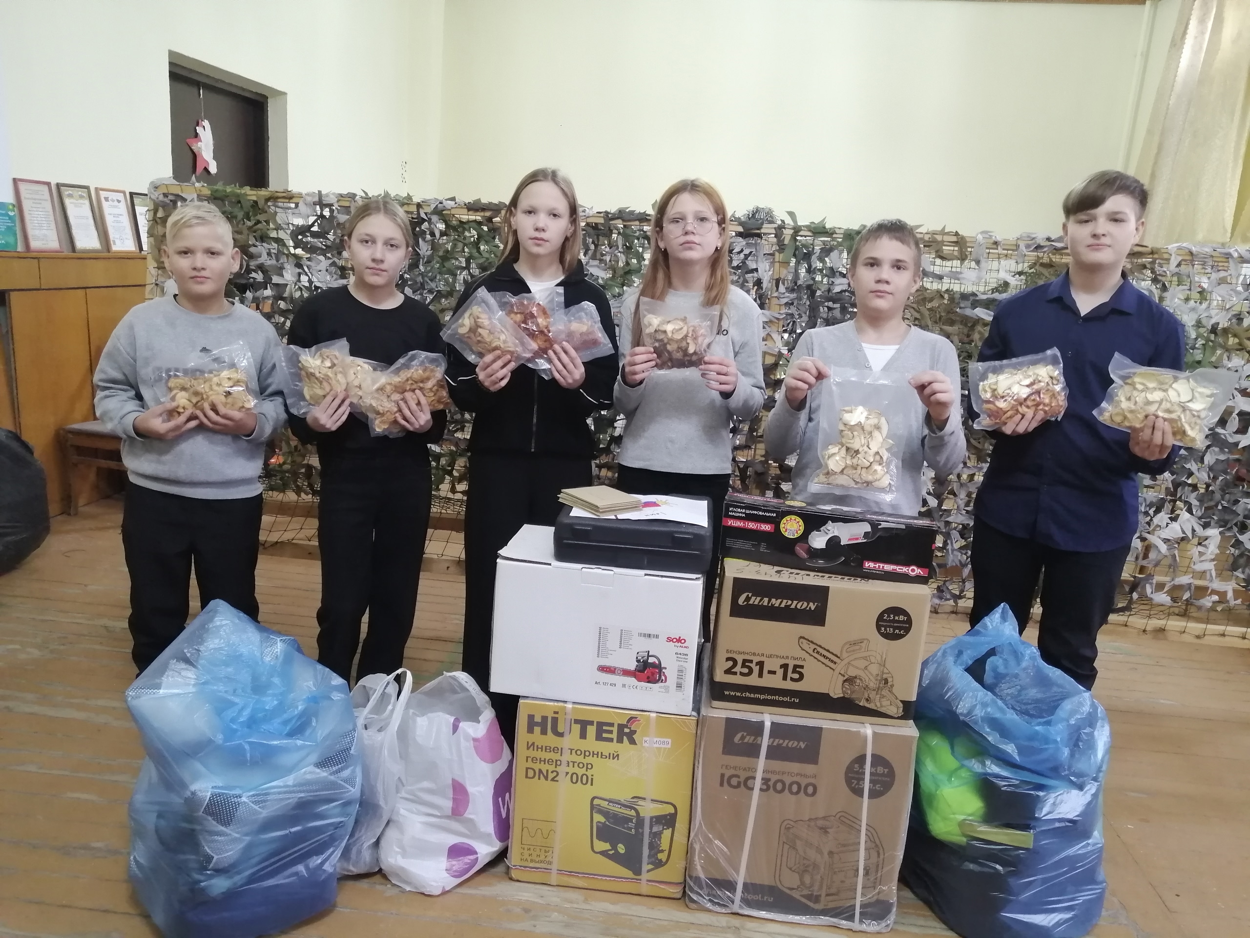 Учащиеся 5 В класса насушили, завакуумировали яблоки из своих садов. Написали письма, рисунки. Ребятами готовятся ещё и талисманы для бойцов. Ждём.