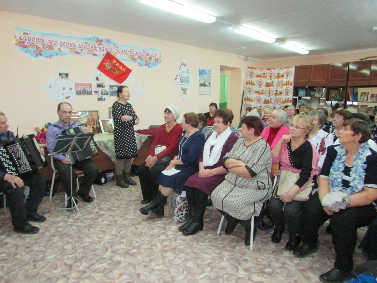 Хочется отметить наших баянистов Зырянова Алексея Витальевича и Воронина Виктора Павловича, они виртуозно сопровождали концертную программу, и обаятельную ведущую Лисьих Нину Ивановну.