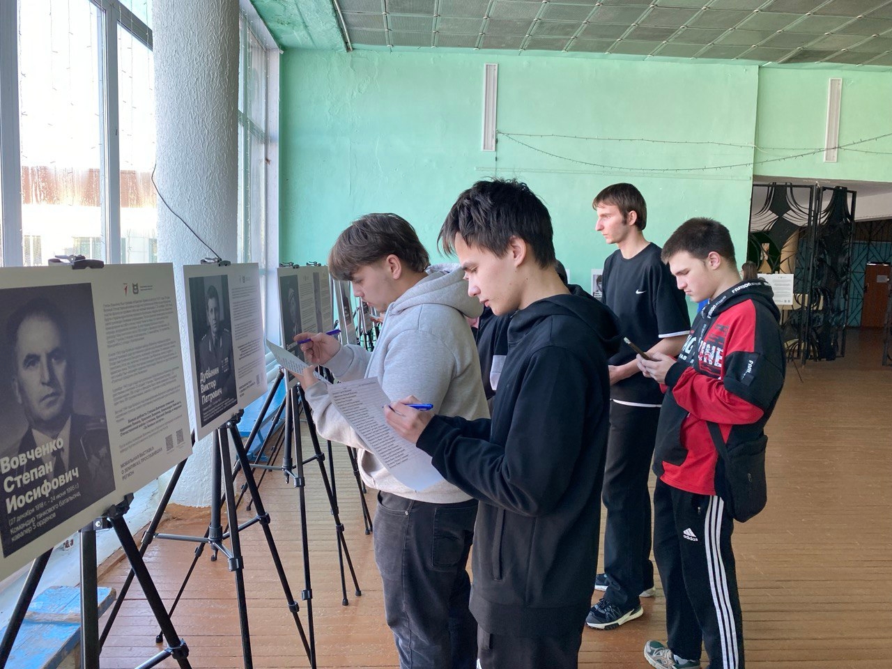 10 марта гостями выставки стали студенты Мишкинского профессионально-педагогического колледжа. Для них была организована экскурсия, после которой для закрепления полученных знаний прошла познавательная игра. Участникам было предложено соотнести портреты героев с описанием их героических поступков. Это помогло им не только закрепить информацию, но и глубже прочувствовать значимость каждого героя, понять, как многогранно понятие мужества и самоотверженности.