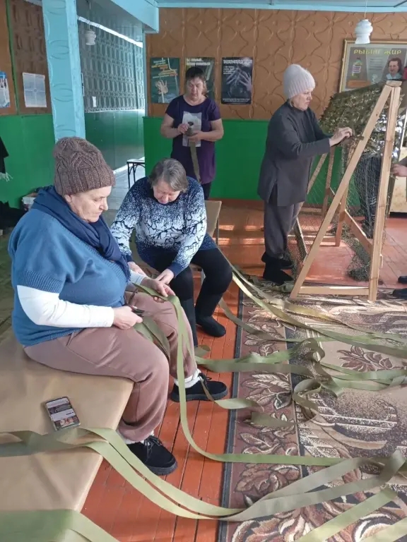 Активные и неравнодушные женщины села взяли в руки не спицы и клубки, а специальную ткань и основу. Они плетут маскировочные сети, которые так необходимы на передовой для защиты бойцов и техники.