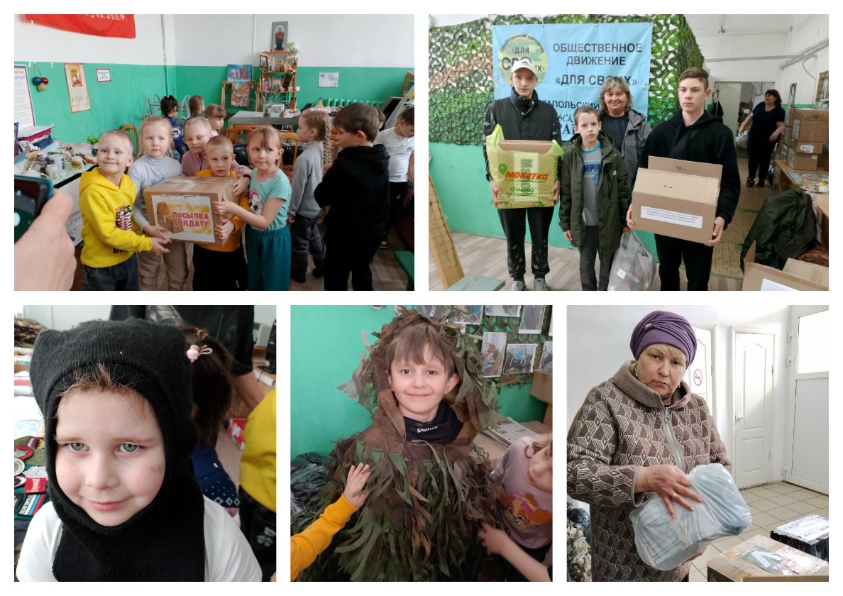 Целый день мы принимали гуманитарку, плели сети, паковали посылки.