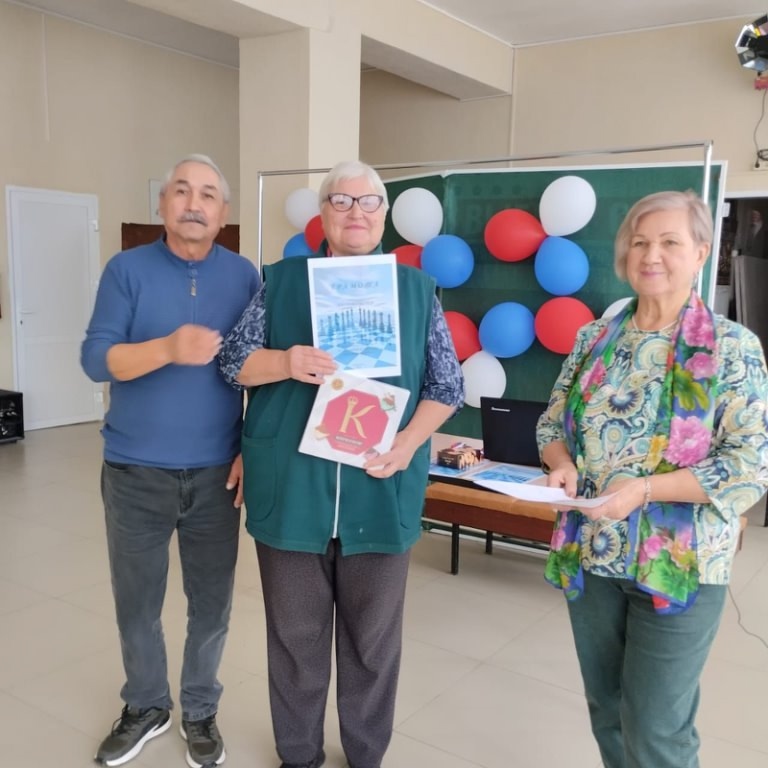 Среди мужчин 1 место Матюков Александр.От районного совета ветеранов призёры награждены Грамотами и медалями, все участники - Дипломами. Общение продолжалось за чашкой чая , которое организовали члены Президиума районного Совета ветеранов Делягина Любовь Фердинантовна и Тельманова Галина Константиновна. Второй тур состоится в конце ОКТЯБРЯ , участниками которого будут ветераны и школьники общеобразовательных школ.
