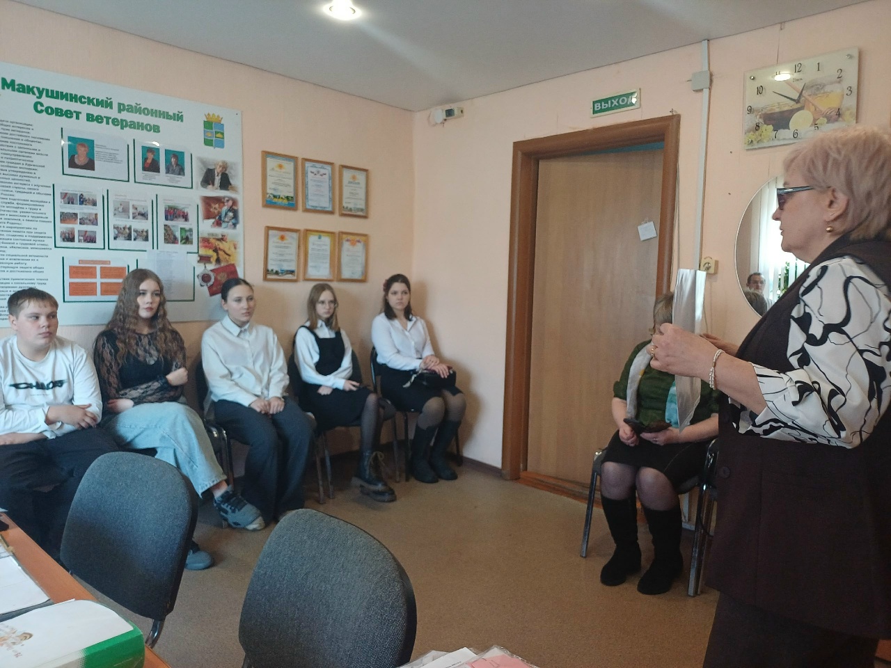 Связь поколений — это непрерывная передача опыта, традиций, культуры и ценностей от старших к младшим. Именно с этой целью 19 марта в Совете ветеранов Макушинского муниципального округа состоялась встреча со школьниками 8-10 классов МКОУ «Казаркинская средняя общеобразовательная школа» имени Героя Советского Союза Г.Т. Чекулаева.