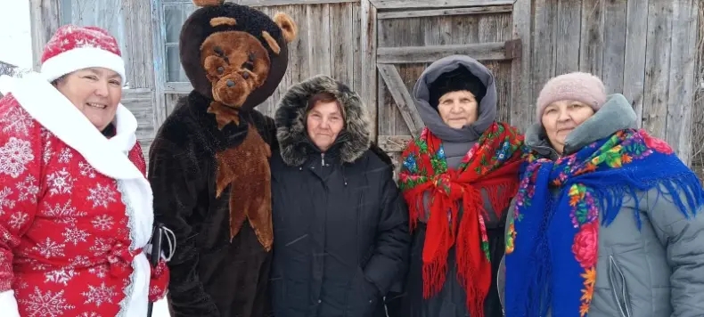 Черемушкинская ветеранская группа "Завалинка" и актив сельского женсовета поздравили с наступающим Новым годом жителей деревень Чаешное и Черешково Лебяжьевского МО серебряного возраста.