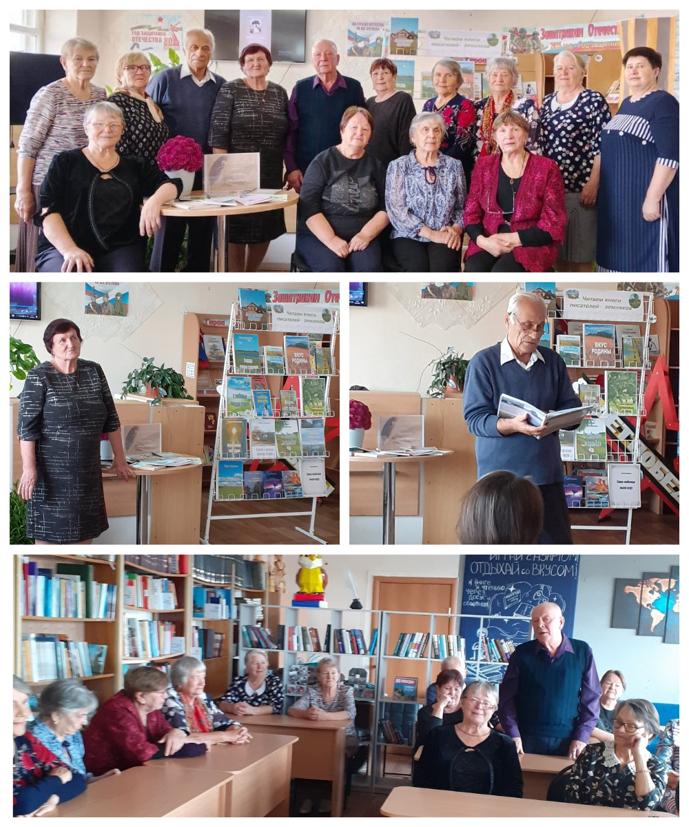 Поэты-земляки прочитали свои стихи. Слушатели с энтузиазмом воспринимали творчество авторов: смеялись, грустили, переживали и радовались вместе с ними. Затем участники встречи сочинили стихи про осень.К мероприятию была организована книжная выставка под названием «Читаем книги писателей-земляков».
