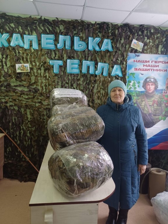 с. Большекурейное: Ширахалова Татьяна, председатель ветеранской организации, передала— 8 маскировочных сетей.