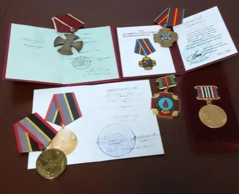 Супруга бережно хранит награды мужа: знак «В память о катастрофе на Чернобыльской АЭС. 25 лет», «Орден мужества», медаль «30 лет Ликвидация аварии на ЧАЭС», удостоверение «Участник ликвидации последствий аварии на Чернобыльской АЭС», благодарственные письма и грамоты и очень заботится о его здоровье.