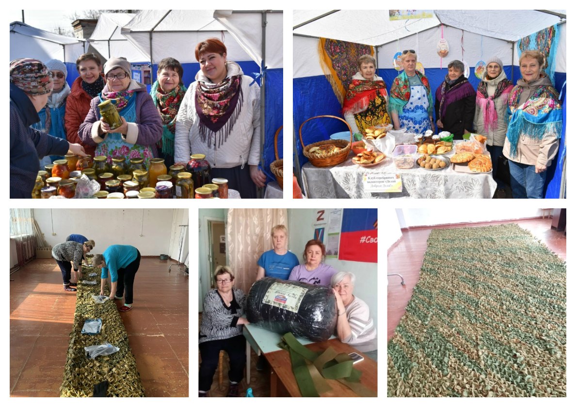 Серебряные волонтеры, участницы Клуба "3 D!"(ДелайДобрыеДела) п. Варгаши активно принимают участие в пасхальной ярмарке на открытой площадке ЦК "Современник". Волонтеры своими "золотыми" ручками приготовили пасхальные куличи, крашеные яйца, разную выпечку. А также принесли продукцию из своего погребка. Все вырученные средства (19 701р.) будут потрачены на приобретение ткани для масксетей.