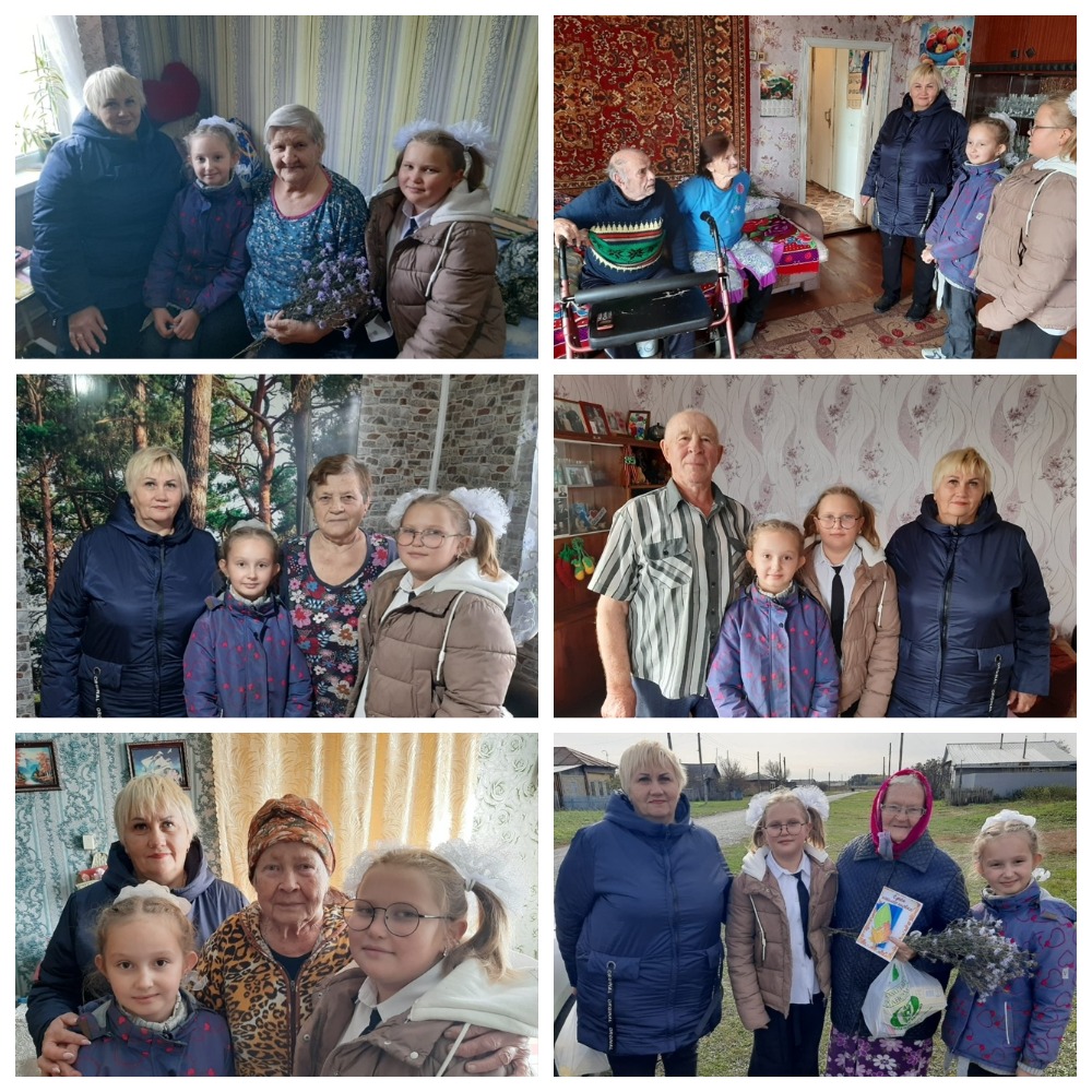Удовольствие от стихов и внимания получили жители Марая и Новых Байдаров, Жилино, которые отнесены к категории детей военного времени. В гостях у них побывали школьницы Ева Дымшакова и Настя Кунова вместе с председателем ветеранской организации Ларисой Ахметовой и культработником Татьяной Хомутниковой. Девочки прочитали ветеранам стихи и вручили открытки, которые сделали они и другие ученики Новобайдарской школы. А Лариса Владимировна и Татьяна Александровна вместе с поздравлениями передали подарки от депутата Курганской областной Думы, руководителя агрохолдинга "Кургансемена" Марата Исламова.