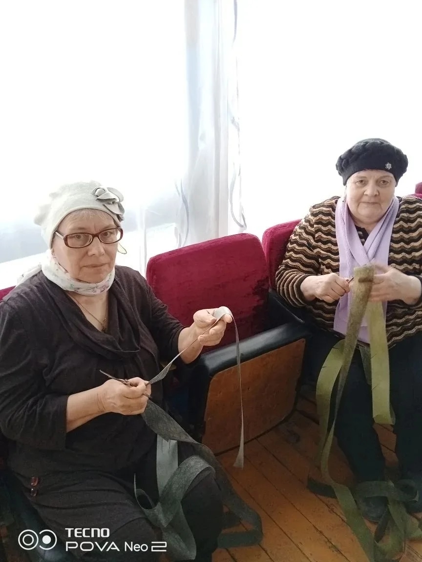Сейчас плетение проходит в здании сельского Дома культуры. Каждый день здесь собираются от 6 до 10 женщин. Одни готовят ленты, другие заняты непосредственно плетением. За время работы уже готовы 4 маскировочные сети. Сейчас у волонтеров небольшая пауза — ждут поступление основы для сетей 28 марта.