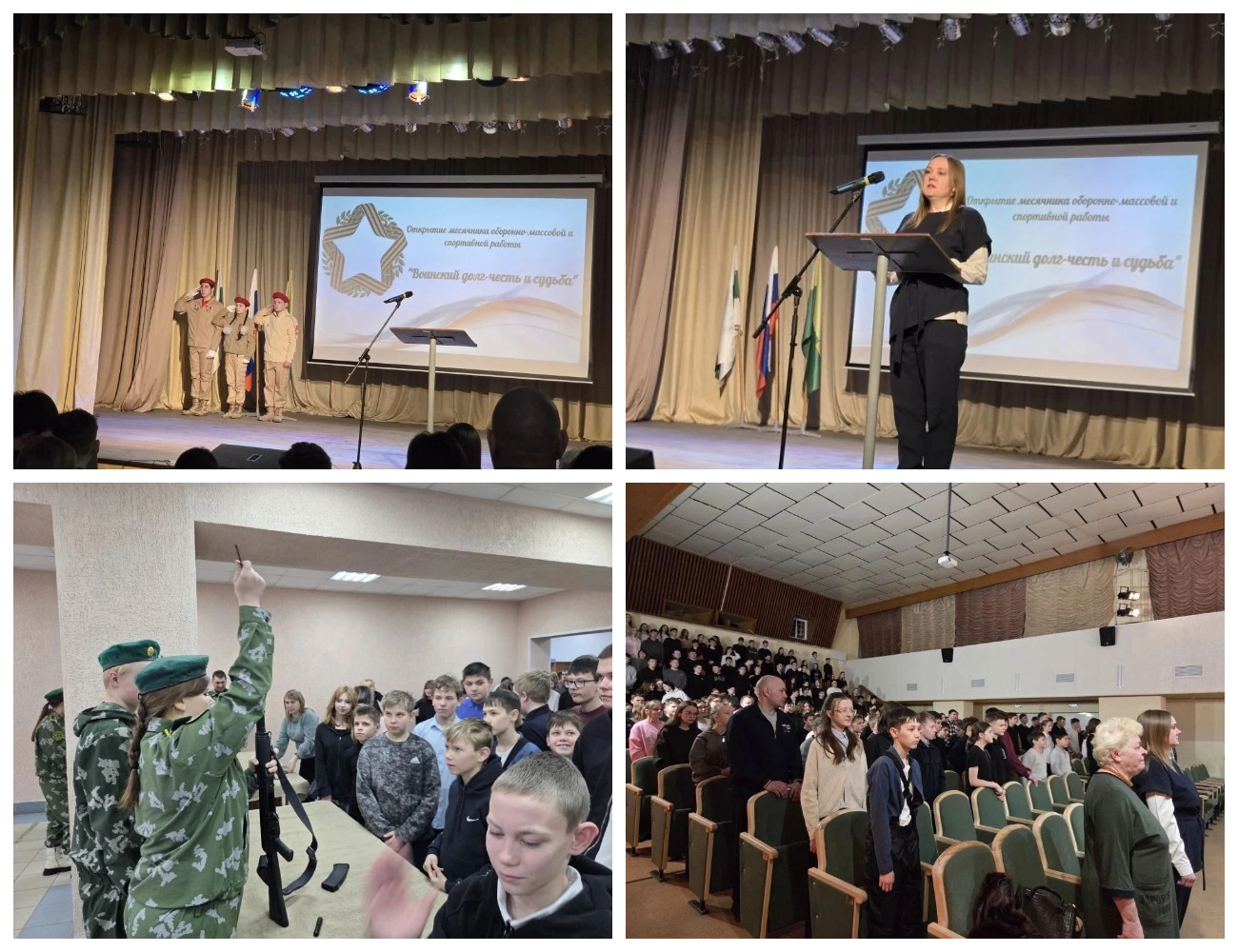 28 января в Притобольном муниципальном округе дан старт важному месячнику, посвященному оборонно-массовой и спортивной работе в рамках национального проекта «Молодежь и дети». Мероприятие, проходящее под девизом «Воинский долг – честь и судьба», призвано напомнить о героическом прошлом нашей страны, в частности, о 81-й годовщине Победы в Великой Отечественной войне, и подчеркнуть значимость единства народов России. В открытии месячника приняли участие учащиеся Глядянской СОШ, юнармейский отряда «Дружина».