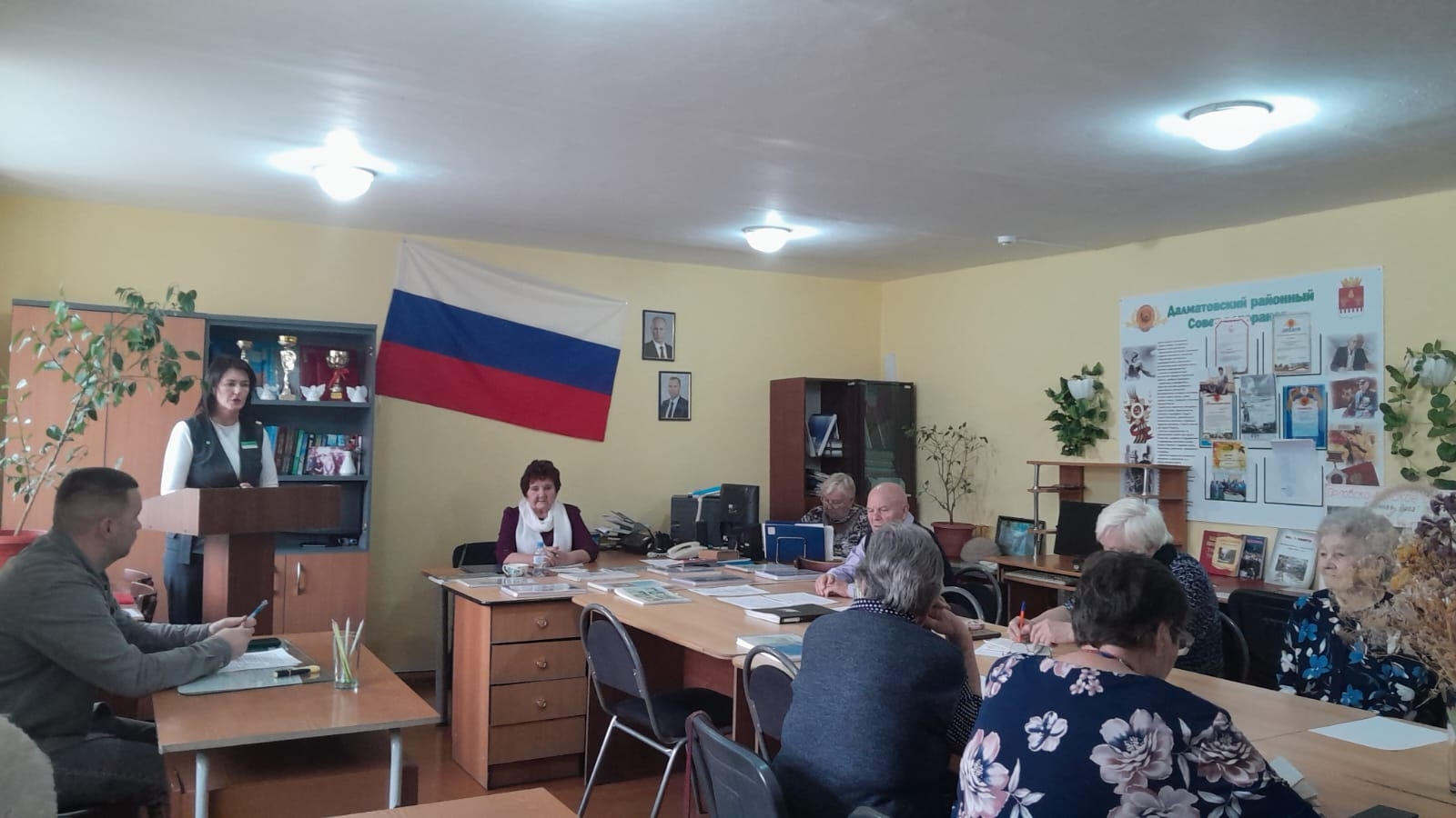 Интересные и познавательные встречи ежемесячно по средам проходят в Далматовском районном совете ветеранов. Ноябрьское заседание социально-бытового факультета Университета для людей старшего поколения было посвящено актуальным вопросам. На «ветеранскую среду» пригласили М.В.Гавриловских – руководителя дополнительного офиса Сбербанка и К.А.Швецова - руководителя отдела ГО и ЧС Администрации Далматовского МО округа.