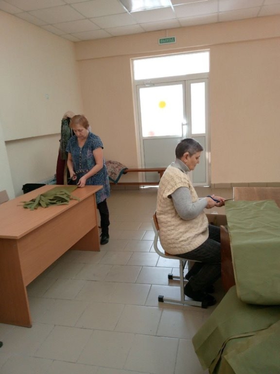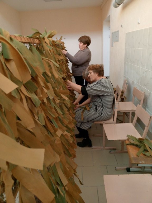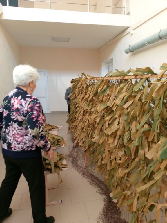 Члены первичной ветеранской организации Юргамышской средней школы после небольшого перерыва продолжили работу по плетению маскировочных сетей.
