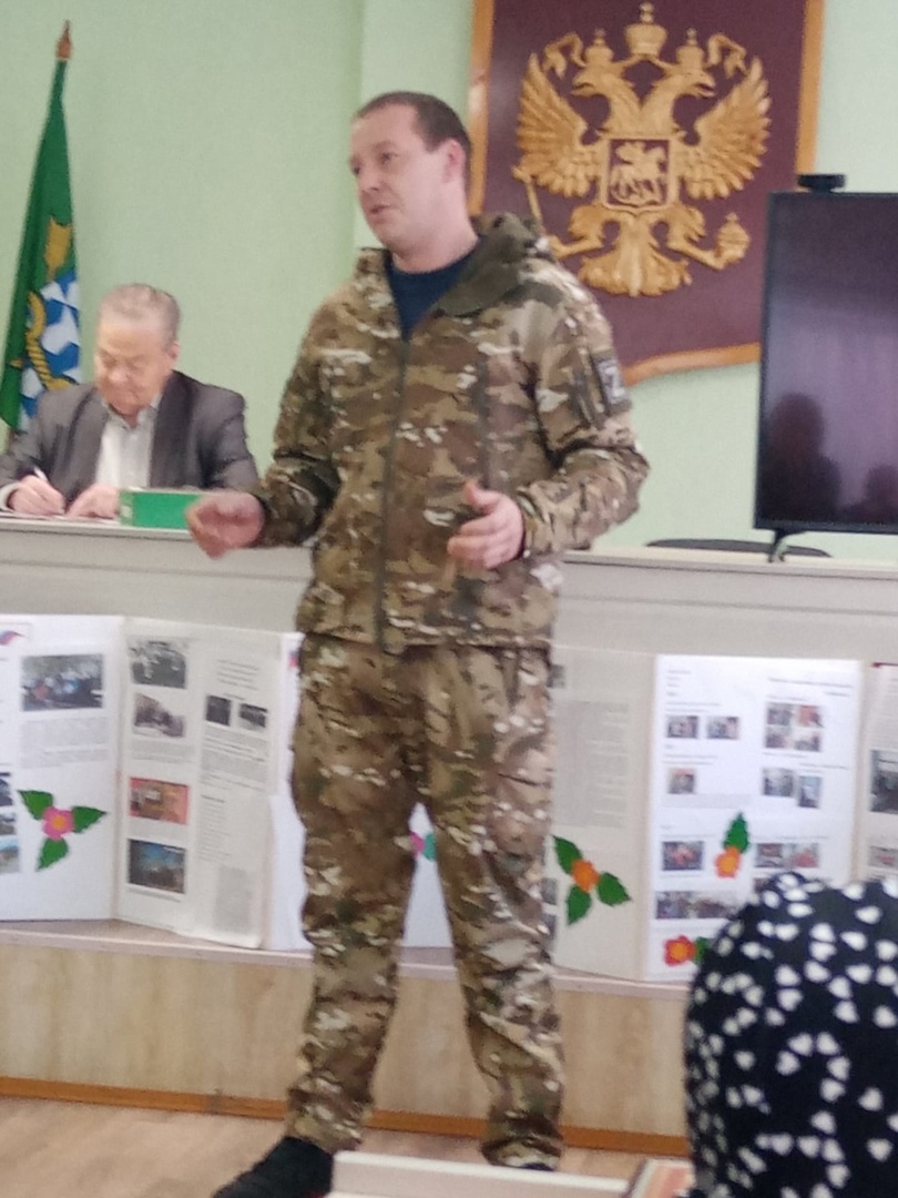 На конференции присутствовал участник СВО, доброволец Масленников Алексей Викторович. Он вкратце рассказал о жизни на передовой, поблагодарил всех , кто занимается сбором и отправкой гуманитарной помощи. Она очень необходима нашим бойцам.