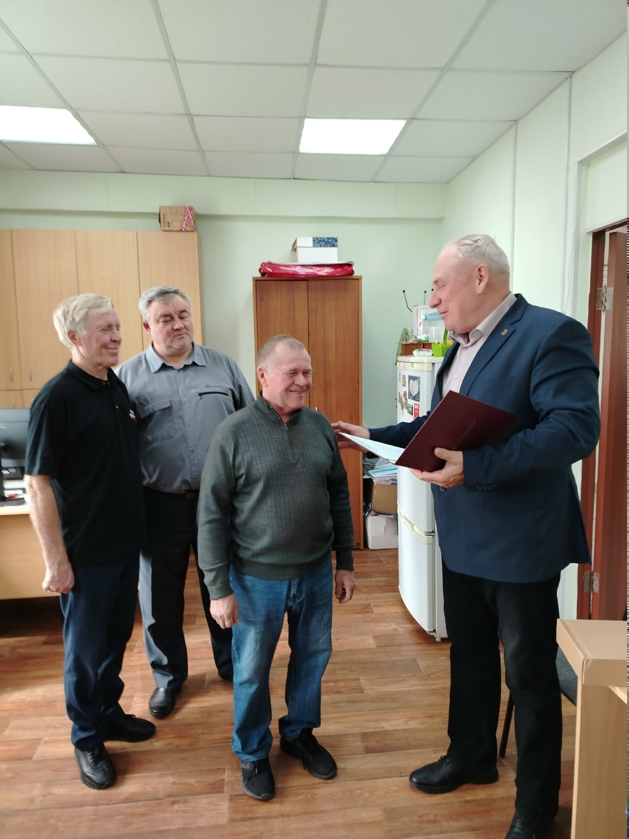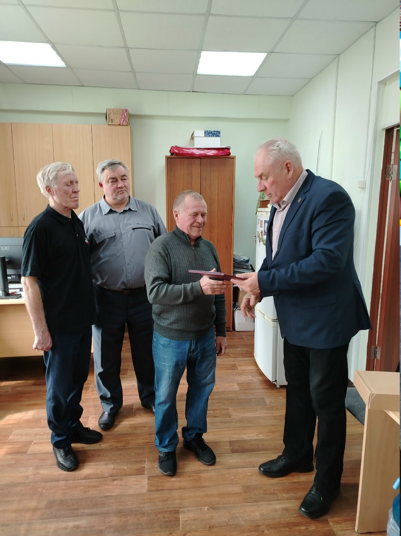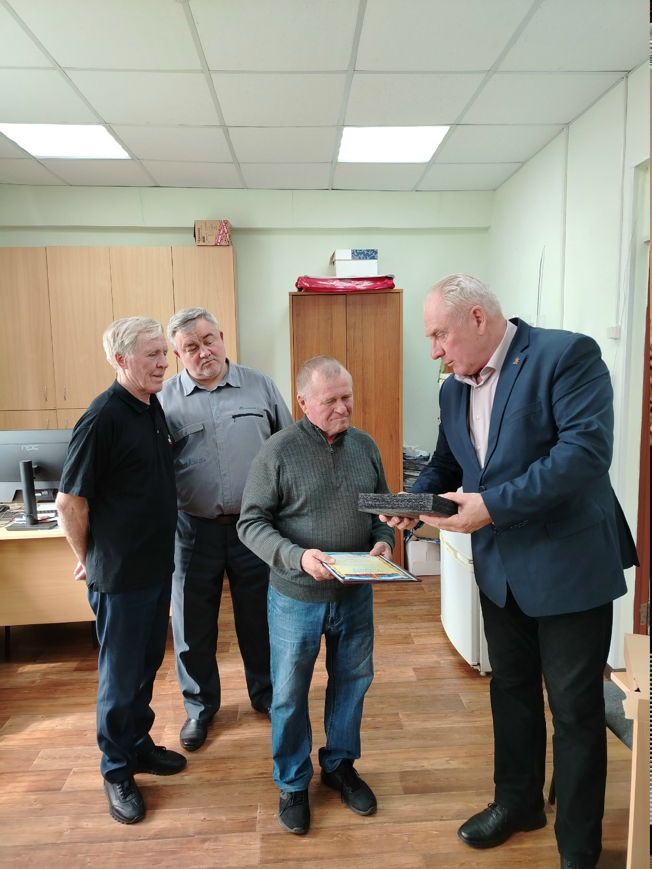 Председатель Курганской областной организации ветеранов Черкащенко Ю.А., председатель ветеранской организации Росгвардии – Шумков А.Г. поздравили именинника. Вручили Почетную грамоту, Приветственный адрес и подарок. Выразили слова благодарности за активное участие в воспитании подрастающего поколения и сохранение традиций границы.