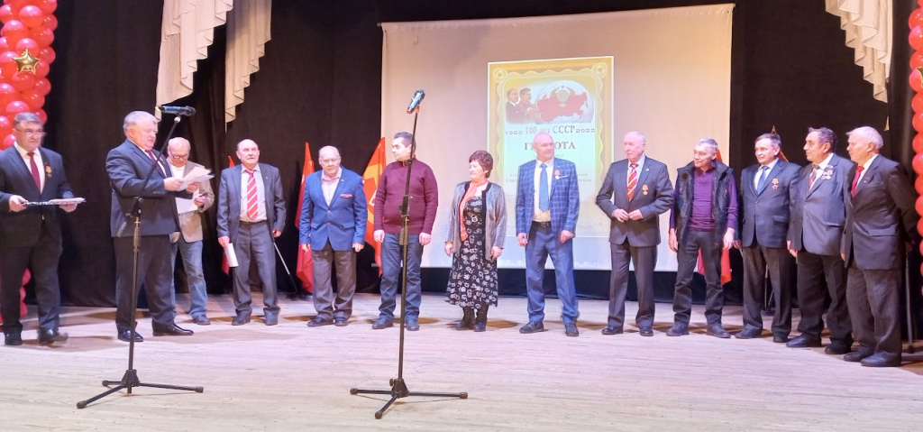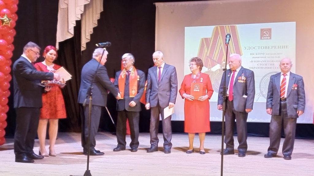 Почётным гостям от общественных организаций, секретарям районных парткомов, знаменитым людям города и области были вручены Почётные грамоты и юбилейные медали ЦК КПРФ к "100-летию образования СССР".
