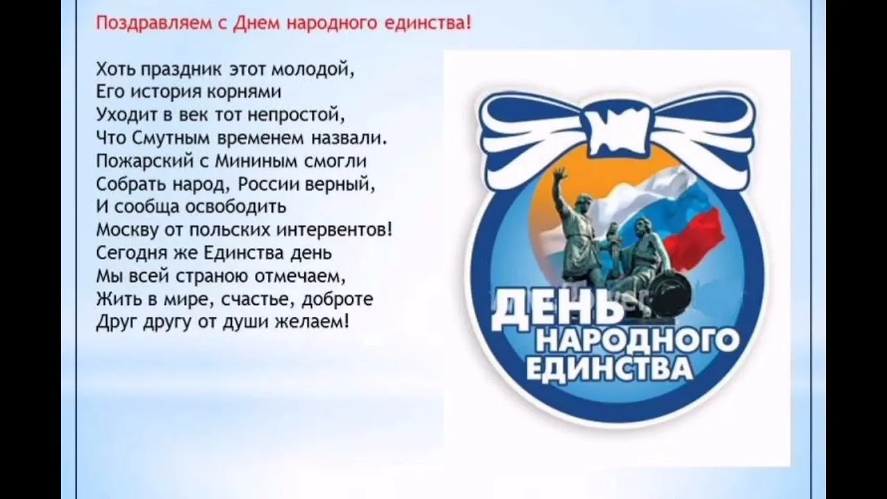 Поздравляю вас с Днём народного единства! История учит: когда мы едины, нет преград, которые нельзя преодолеть. Пусть дух сотрудничества укрепляет социальные связи, а стремление к развитию становится общим делом. Желаю, чтобы каждый гражданин нашей страны чувствовал свою значимость в построении сильной и процветающей России. Сохраним наследие прошлого для будущих поколений!