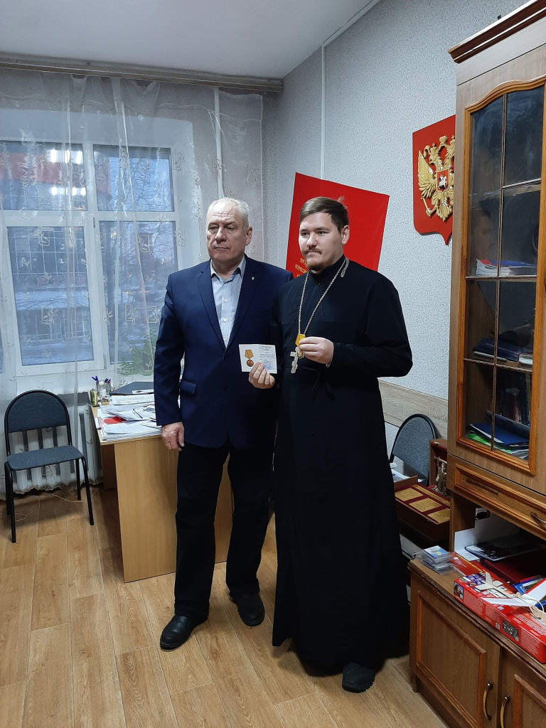 Батюшке была вручена медаль «МЕЧОМ И ВЕРОЙ» за участие в СВО и духовное окормление бойцов.
