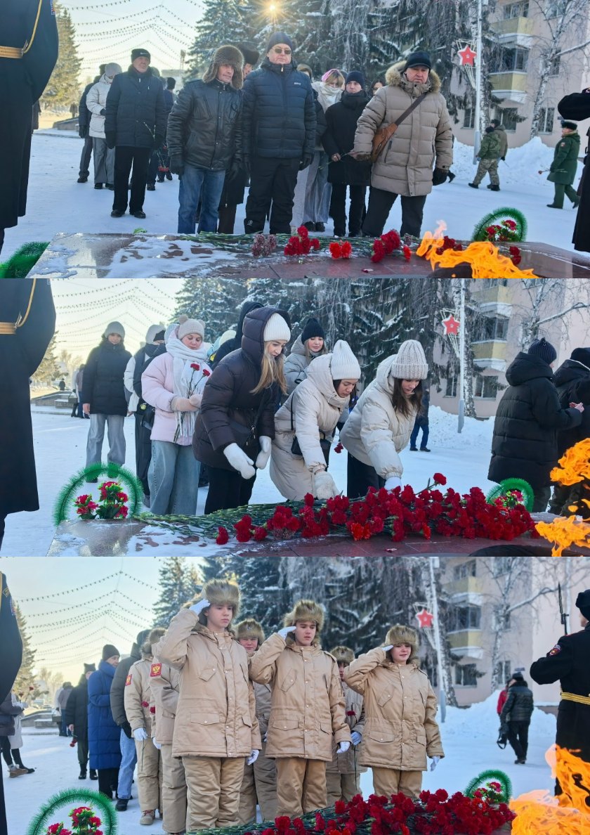 Открыл торжественную церемонию полковник запаса Варфоломеев В.В. – Председатель Регионального отделения ДОСААФ России Курганской области. Была объявлена минута молчания в знак глубочайшего уважения и памяти. Участники возложили цветы к Вечному Огню мемориального комплекса воинов-курганцев и стеле «Зауральцы - Герои Советского Союза».
