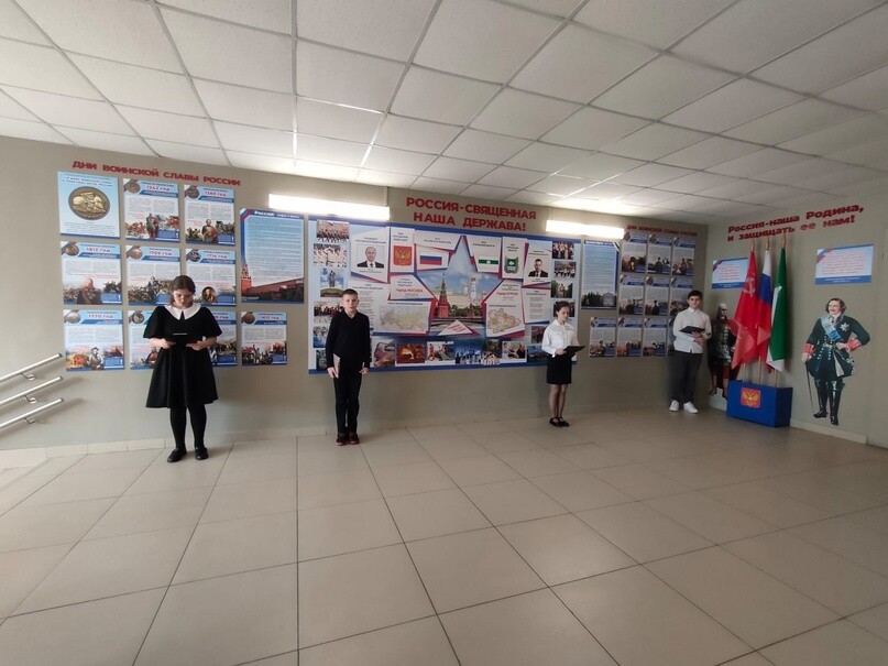 19 декабря, в гимназии № 32 города Кургана прошло торжественное открытие патриотического панно «Герои России». На мероприятии присутствовали гости – представители ветеранских организаций Кургана, и ученики 9 и 11 классов. Директор гимназии Гранкина Е. Д, и гости, обращаясь к ребятам, подчеркнули важность и значимость для сегодняшней молодежи данного праздника. Любовь к родине - это и любовь к своей стране, и к месту, где ты родился. Ребята из театрального коллектива «Капельки» (рук - Банникова Е.В.) с азартом и напевом показали, что самое главное у России - красота полей и лесов, умение петь и веселиться, радоваться дружбе. Ученица 11 класса Балабух М закончила торжественную часть проникновенной песней «Взмахни, Русь, крылами». Вторая часть - экскурсия по панно - проведена ребятами 6 б класса под руководством В. Н. Севастьяновой: Березиным В., Сахаровым С, Кошелевой Д, Кураповой Н.