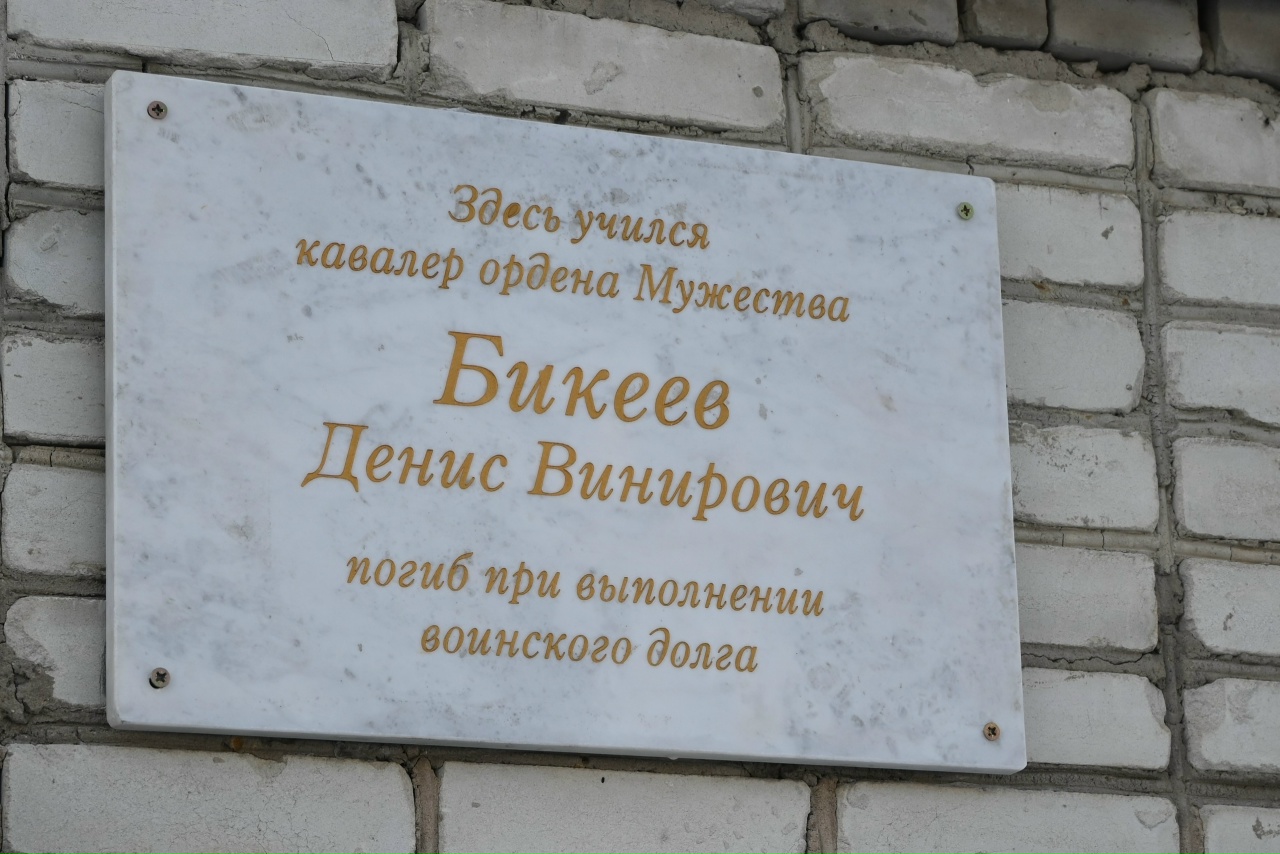 Накануне в Курганском техникуме строительных технологий и городского хозяйства открыли мемориальную доску, увековечивающую светлую память Дениса Бикеева, героя, павшего в бою во время специальной военной операции.