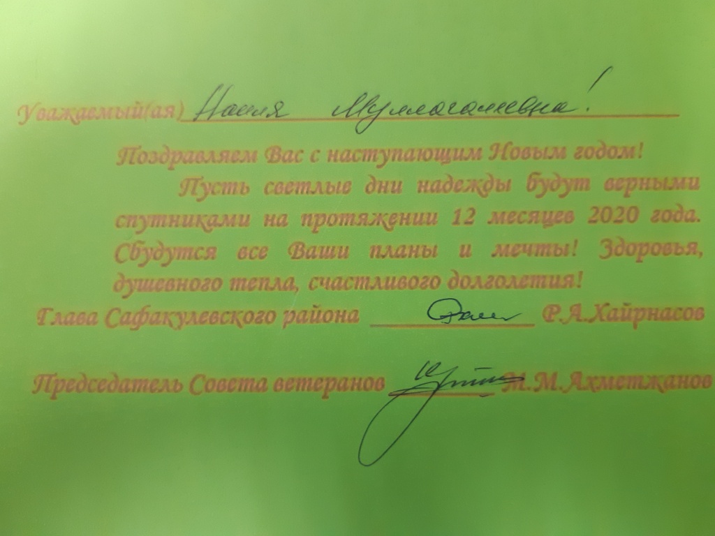 27 декабря 2019 года прошло традиционное мероприятие с председателями первичных ветеранских организаций Сафакулевского района. Подвели итоги, наметили планы на Новый 2020 год. За плечами каждого из них добросовестный, результативный труд во имя родного села, деревни, района. Они и сегодня, как солдаты в строю, продолжают служить, защищать гражданские, социально-экономические, трудовые, личные права и свободы лиц старшего поколения. Стараются дойти до каждого ветерана, пенсионера, оказать им моральную поддержку, решить наболевшие проблемы. Выступают с инициативами по различным вопросам общественной жизни, вносят конкретные предложения в органы местного самоуправления. Участвуют в нравственном, патриотическом воспитании подрастающего поколения.