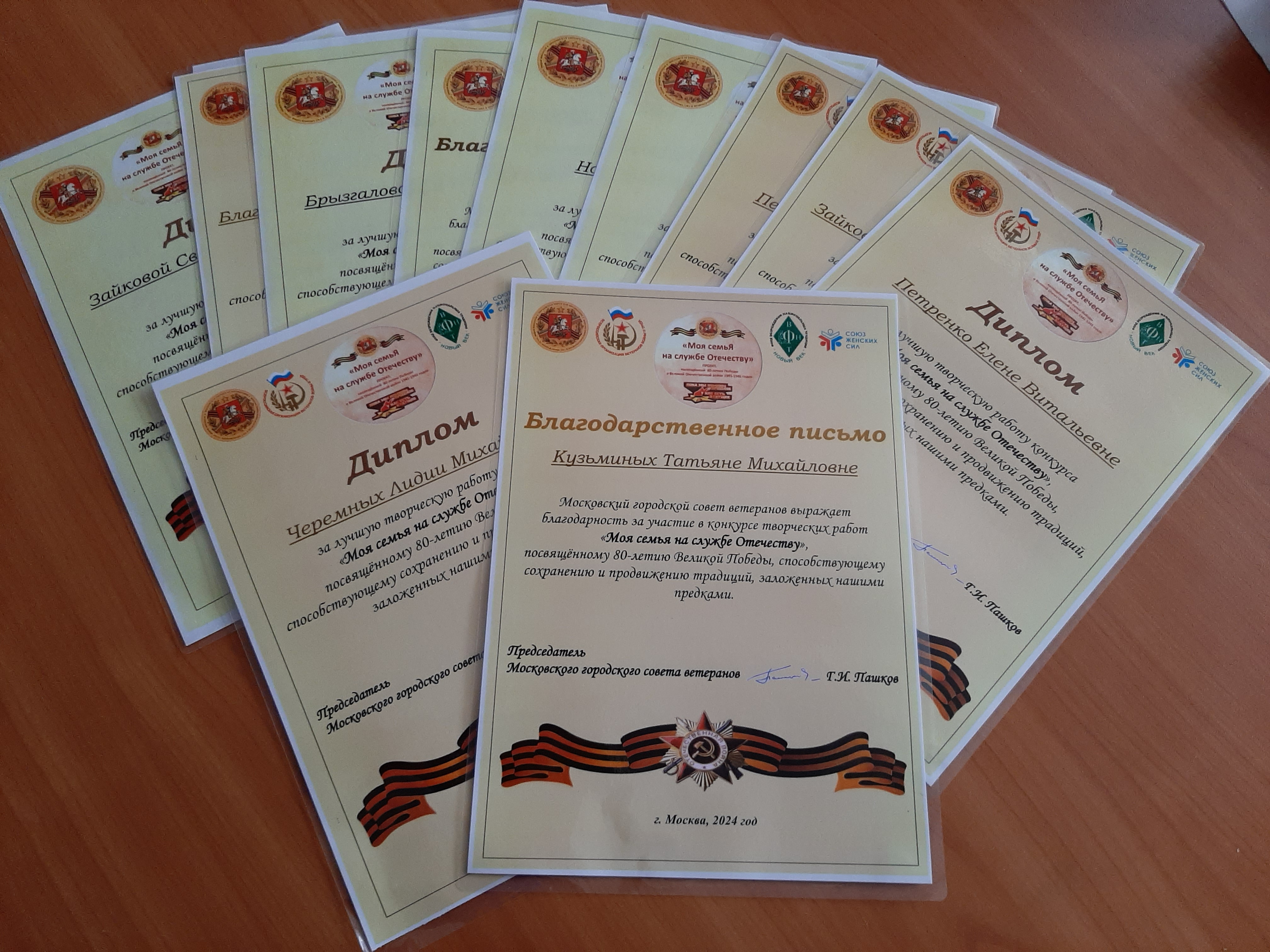 Работы со всеми документами по Положению, были отправлены в Московский городской Совет ветеранов и отмечены Дипломами.